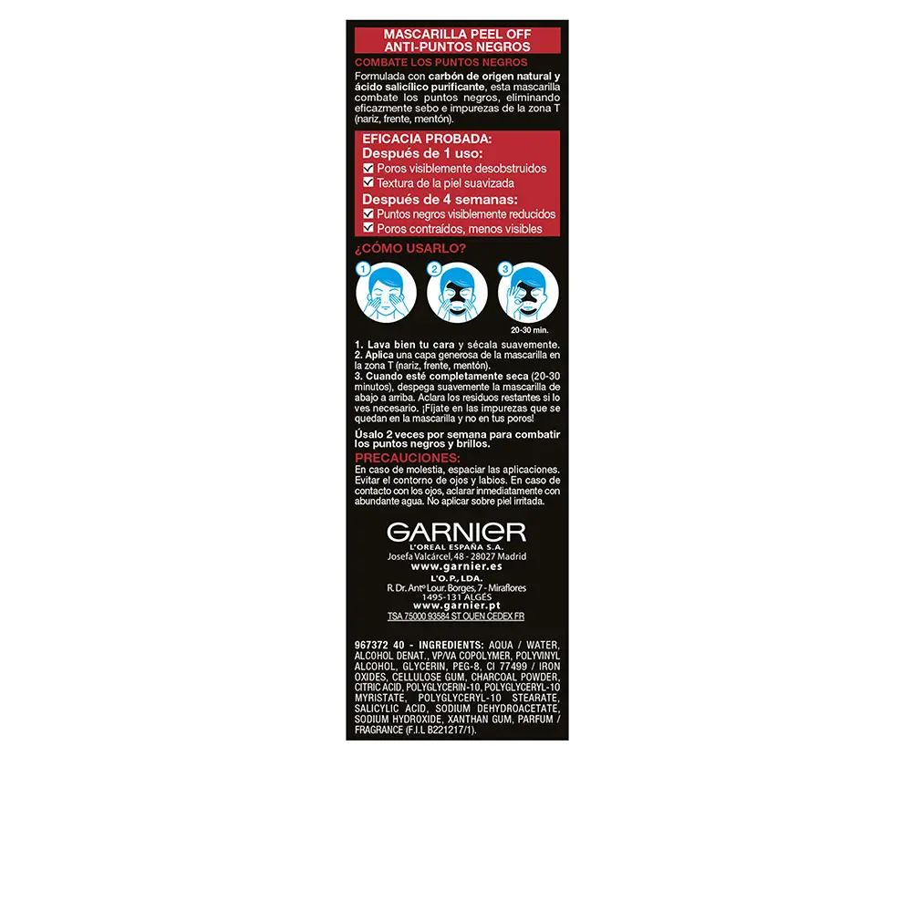 Garnier PURE ACTIVE CARBON mascarilla peel-off puntos negros