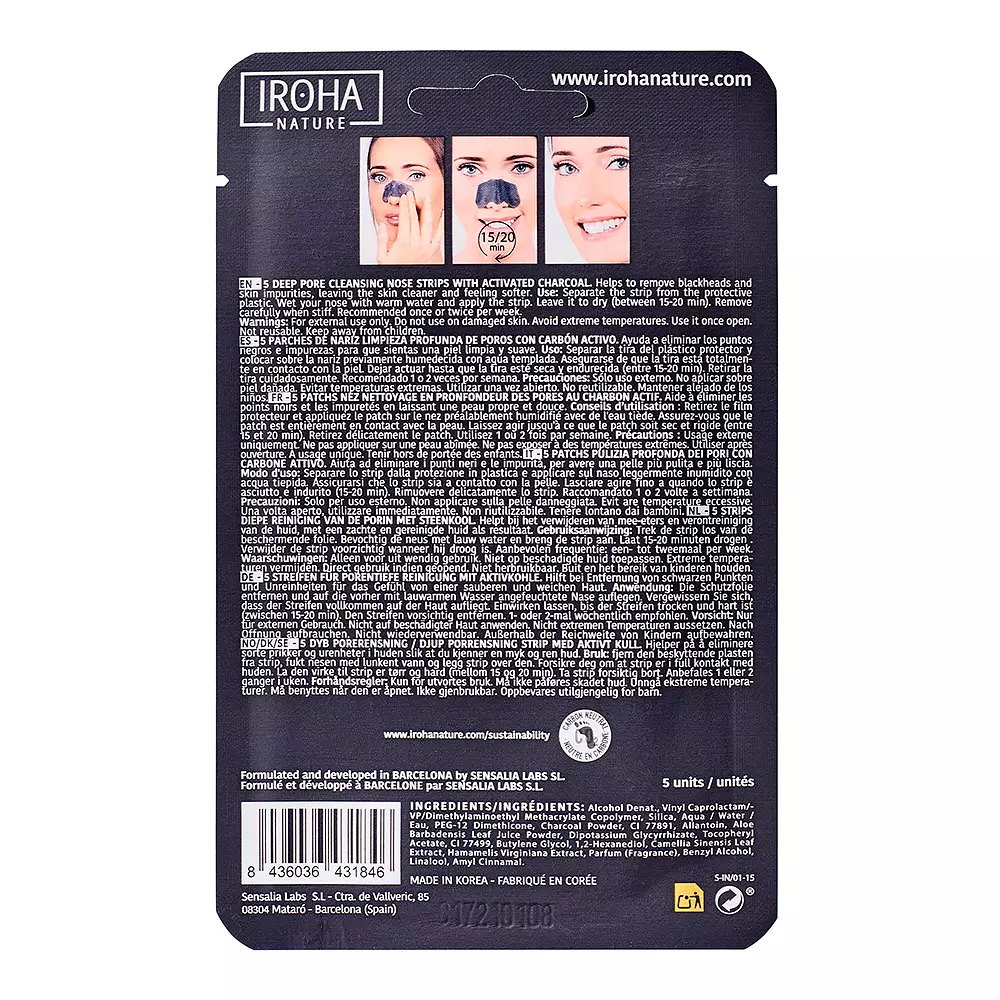 Kem điều trị mụn trứng cá & loại bỏ đầu đen Iroha Nature DETOX CHARCOAL BLACK nose strips