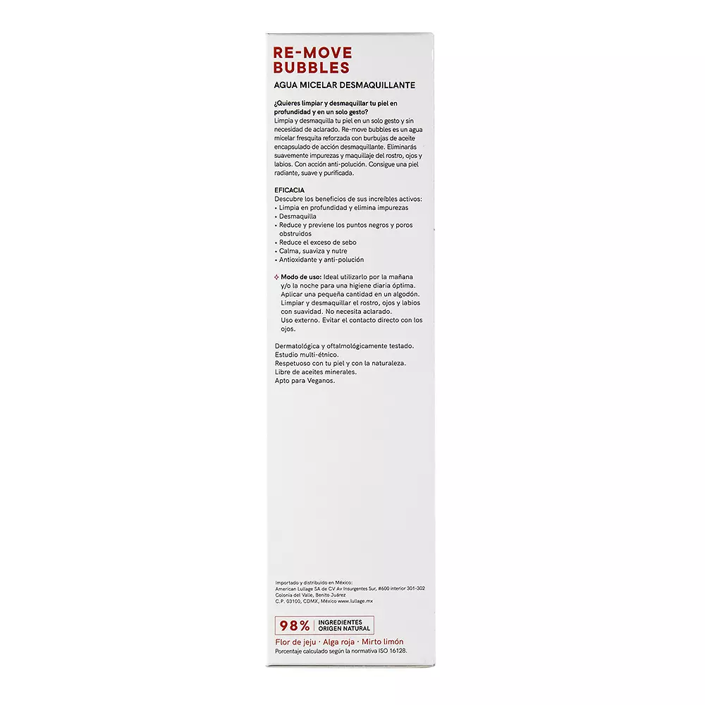 Lullage RE-MOVE BUBBLES agua micelar desmaquillante